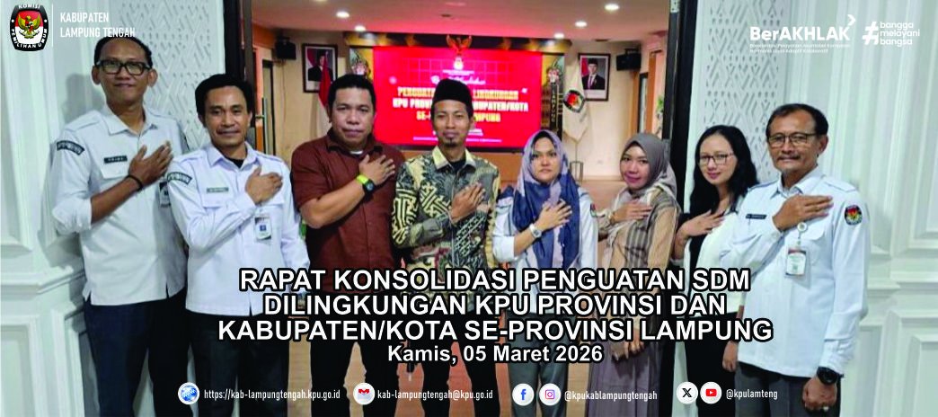 KPU Kabupaten Lampung Tengah menghadiri kegiatan Rapat Konsolidasi Penguatan Sumber Daya Manusia (SDM) di lingkungan KPU Provinsi dan KPU Kabupaten/Kota se-Provinsi Lampung yang diselenggarakan oleh Komisi Pemilihan Umum Provinsi Lampung pada Kamis, 05 Maret 2026. Kegiatan tersebut dilaksanakan di Kantor Komisi Pemilihan Umum Provinsi Lampung dan diikuti oleh jajaran penyelenggara pemilu dari seluruh kabupaten/kota di Provinsi Lampung. Dalam kegiatan tersebut, Komisi Pemilihan Umum Kabupaten Lampung Tengah diwakili oleh seluruh Komisioner KPU Kabupaten Lampung Tengah, Sekretaris KPU Kabupaten Lampung Tengah, serta para Kepala Subbagian di lingkungan Sekretariat KPU Kabupaten Lampung Tengah. Kehadiran jajaran KPU Kabupaten Lampung Tengah dalam rapat konsolidasi ini menjadi bentuk komitmen bersama untuk terus memperkuat kapasitas kelembagaan, khususnya dalam pengelolaan sumber daya manusia yang profesional, kompeten, dan berintegritas. Rapat konsolidasi ini diselenggarakan sebagai upaya untuk memperkuat koordinasi, komunikasi, dan sinergi antara KPU Provinsi dan KPU Kabupaten/Kota dalam rangka meningkatkan kualitas pengelolaan SDM di lingkungan penyelenggara pemilu. Melalui kegiatan ini, diharapkan seluruh jajaran KPU dapat memiliki pemahaman yang sama terkait kebijakan, strategi, serta langkah-langkah yang perlu dilakukan dalam pengembangan dan penguatan kapasitas sumber daya manusia. Selain itu, kegiatan ini juga menjadi forum untuk menyampaikan berbagai arahan dan kebijakan strategis terkait pengelolaan SDM, mulai dari peningkatan kompetensi pegawai, penguatan disiplin kerja, peningkatan profesionalitas aparatur, hingga pengembangan tata kelola organisasi yang lebih efektif dan efisien. Hal ini menjadi sangat penting mengingat sumber daya manusia merupakan salah satu faktor utama yang menentukan keberhasilan pelaksanaan tugas dan fungsi KPU sebagai lembaga penyelenggara pemilu. Dalam rapat tersebut juga dibahas berbagai tantangan dan dinamika yang dihadapi dalam pengelolaan SDM di lingkungan KPU, baik di tingkat provinsi maupun kabupaten/kota. Para peserta rapat diberikan kesempatan untuk menyampaikan masukan, pandangan, serta berbagi pengalaman terkait pengelolaan sumber daya manusia di masing-masing satuan kerja. Diskusi yang berlangsung secara interaktif ini diharapkan dapat menghasilkan berbagai gagasan serta solusi yang konstruktif dalam rangka meningkatkan kualitas pengelolaan SDM di lingkungan KPU. Selain memperkuat koordinasi, rapat konsolidasi ini juga menjadi momentum untuk mempererat hubungan kerja serta membangun soliditas antar jajaran KPU di Provinsi Lampung. Dengan adanya komunikasi dan koordinasi yang baik, diharapkan seluruh jajaran KPU dapat bekerja secara lebih terintegrasi, selaras, dan saling mendukung dalam menjalankan berbagai program dan kegiatan kelembagaan. Melalui kegiatan ini, Komisi Pemilihan Umum Kabupaten Lampung Tengah berharap dapat terus meningkatkan kualitas sumber daya manusia di lingkungan sekretariat maupun komisioner, sehingga mampu menjalankan tugas dan tanggung jawab sebagai penyelenggara pemilu secara profesional, akuntabel, serta berintegritas. Penguatan SDM juga menjadi bagian penting dalam upaya menjaga kepercayaan publik terhadap lembaga penyelenggara pemilu. Dengan dilaksanakannya rapat konsolidasi ini, diharapkan seluruh jajaran KPU di Provinsi Lampung dapat semakin siap dalam menghadapi berbagai tantangan tugas ke depan, sekaligus mampu meningkatkan kualitas pelayanan kepada masyarakat dalam penyelenggaraan pemilu yang demokratis, transparan, dan berintegritas sesuai dengan ketentuan peraturan perundang-undangan yang berlaku. ....