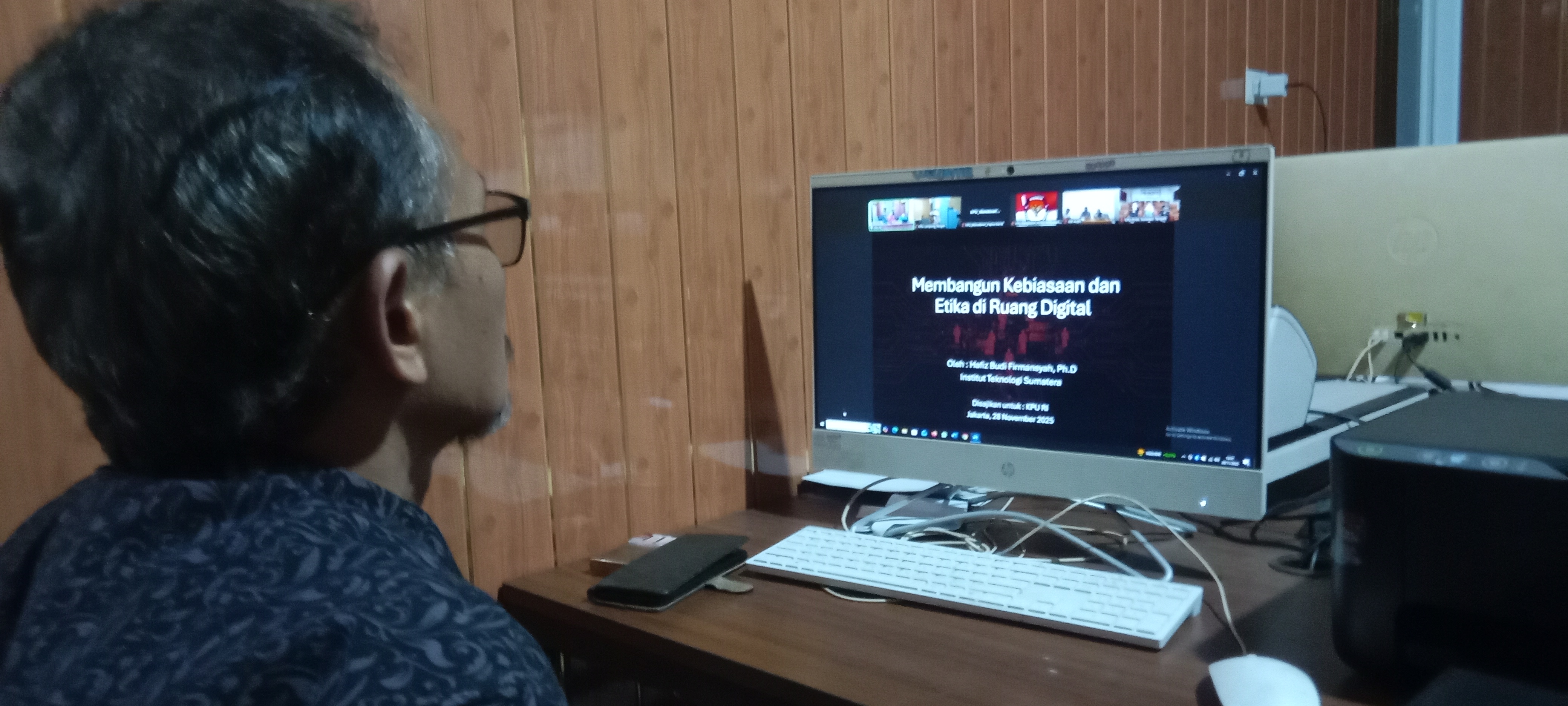 Komisi Pemilihan Umum (KPU) Kabupaten Lampung Tengah mengikuti Webinar bertema “Membangun Kebiasaan dan Etika di Ruang Digital” yang diselenggarakan oleh KPU Republik Indonesia pada Jumat, 28 November 2025.