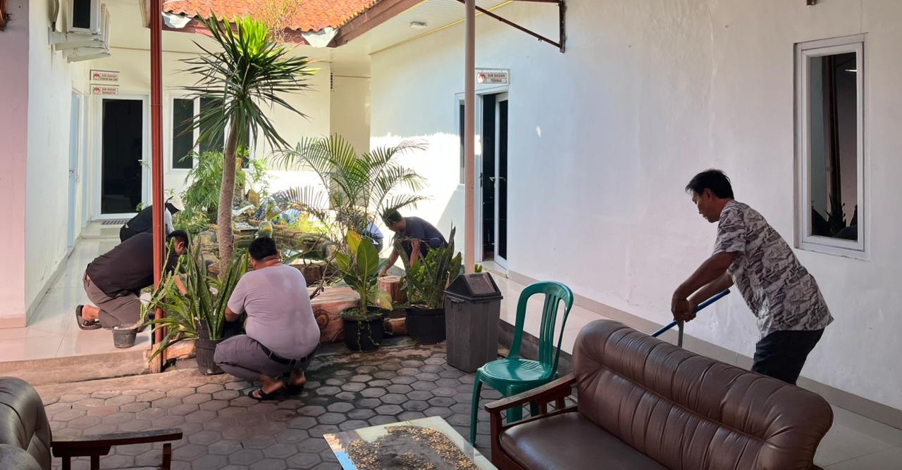 Sejak pagi hari, seluruh peserta kegiatan secara bersama-sama membersihkan berbagai area kantor, mulai dari halaman depan, area parkir, taman, hingga seluruh ruangan kerja, ruang rapat, dan fasilitas pelayanan publik. Kegiatan dilaksanakan dengan penuh semangat gotong royong dan kebersamaan.