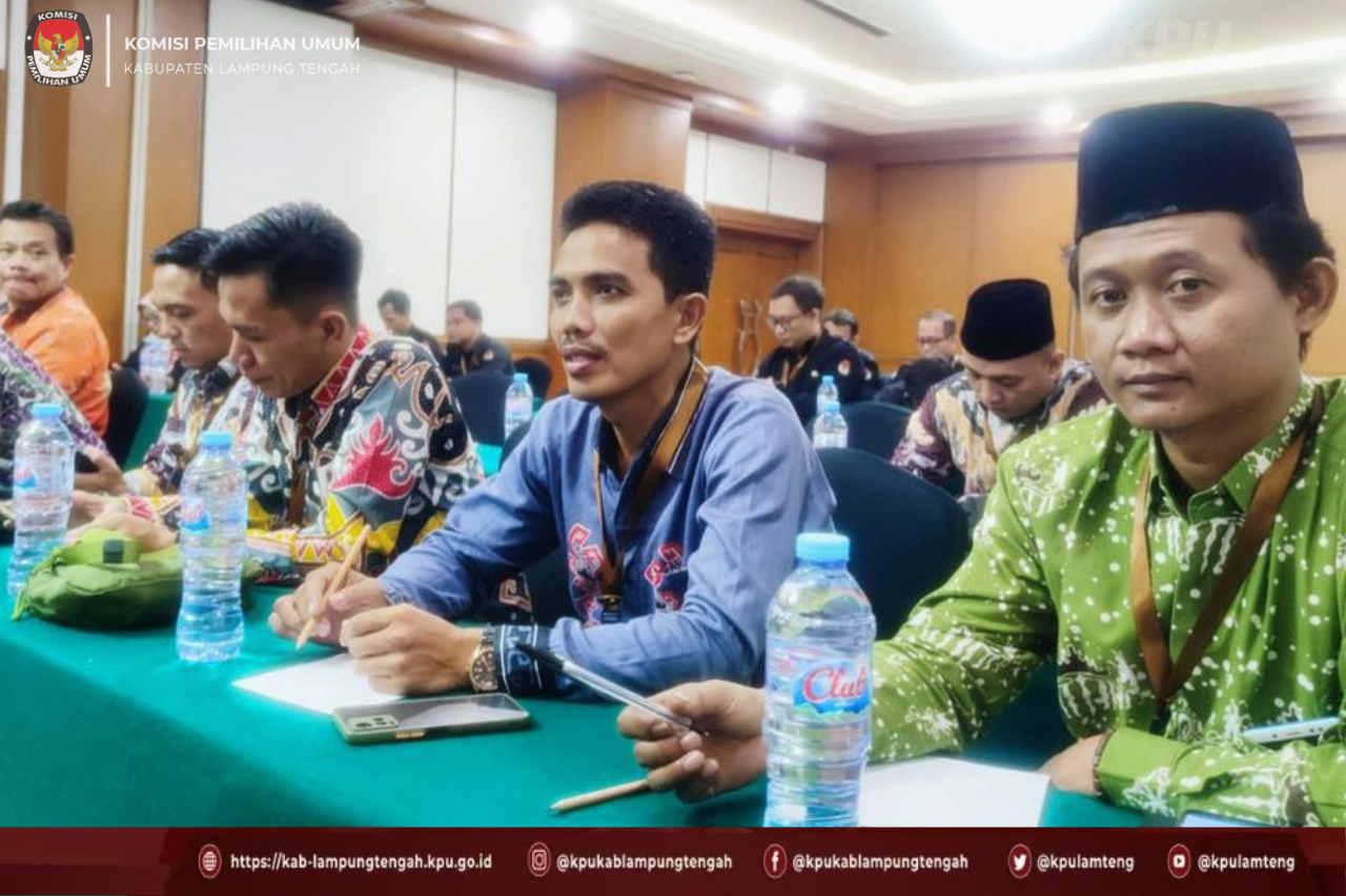 #TemanPemilih, Ketua Divisi Penyelenggara Pemilu Komisi Pemilihan Umum Kabupaten Lampung Tengah Adi Hasan Basri, Kasubag Teknis dan Parmas Tri Wiyatno dan Operator Aplikasi Silon mengikuti Kegiatan Bimbingan Teknis Tata Cara Pelaksanaan Verifikasi Administrasi Persyaratan Bakal Calon Anggota DPD, DPRD Provinsi dan DPRD Kabupaten/Kota Serta Penggunaan Silon Dalam Pemilu 2024 Bagi KPU Provinsi dan KPU Kabupaten/Kota di Hotel Grand Sahid Jaya Jakarta Pusat dari Tanggal 26 s.d 28 Mei 2023.