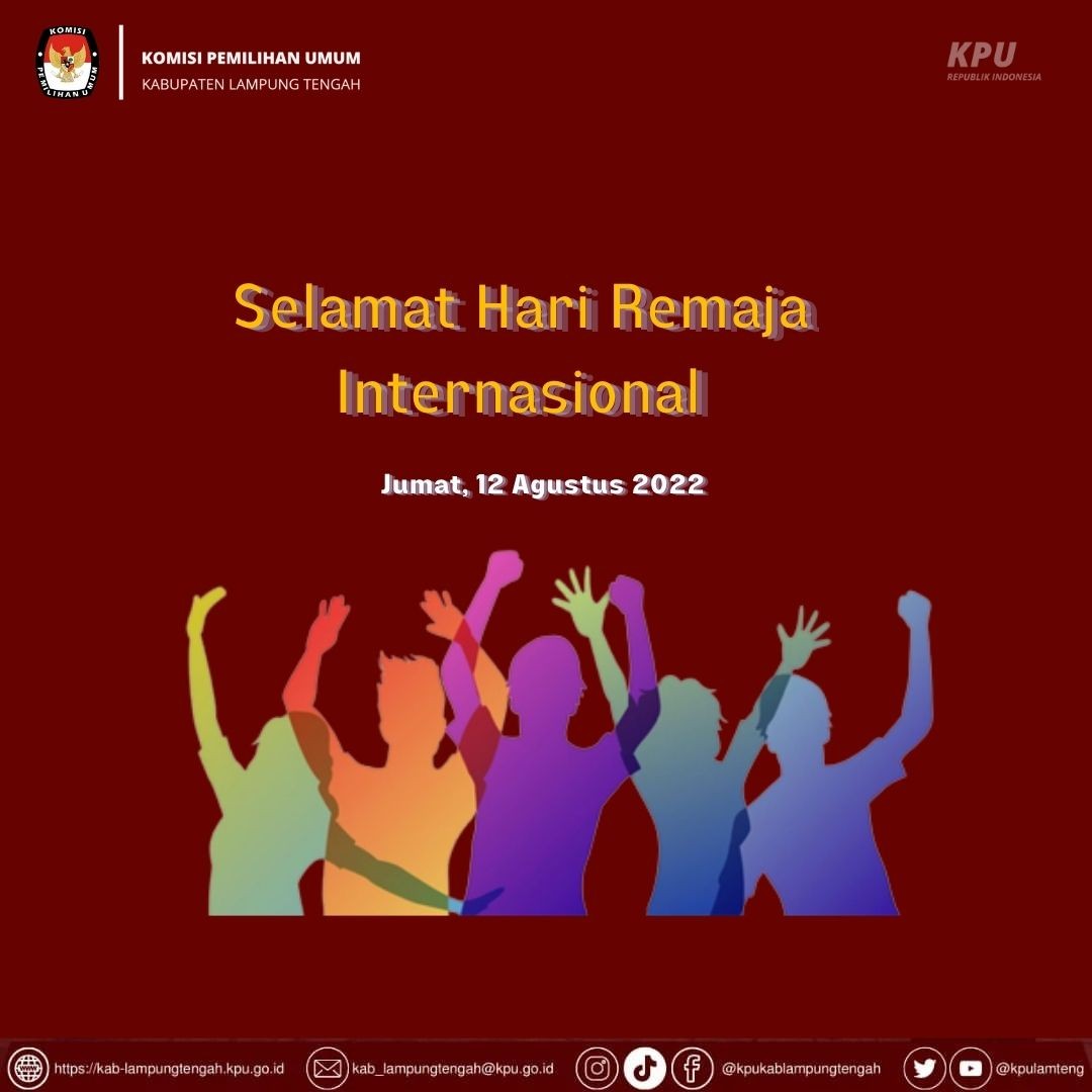Segenap Jajaran Komisi Pemilihan Umum Kabupaten Lampung Tengah mengucapkan Selamat Hari Pemuda Internasional. Majulah terus Para Pemuda di Seluruh Dunia