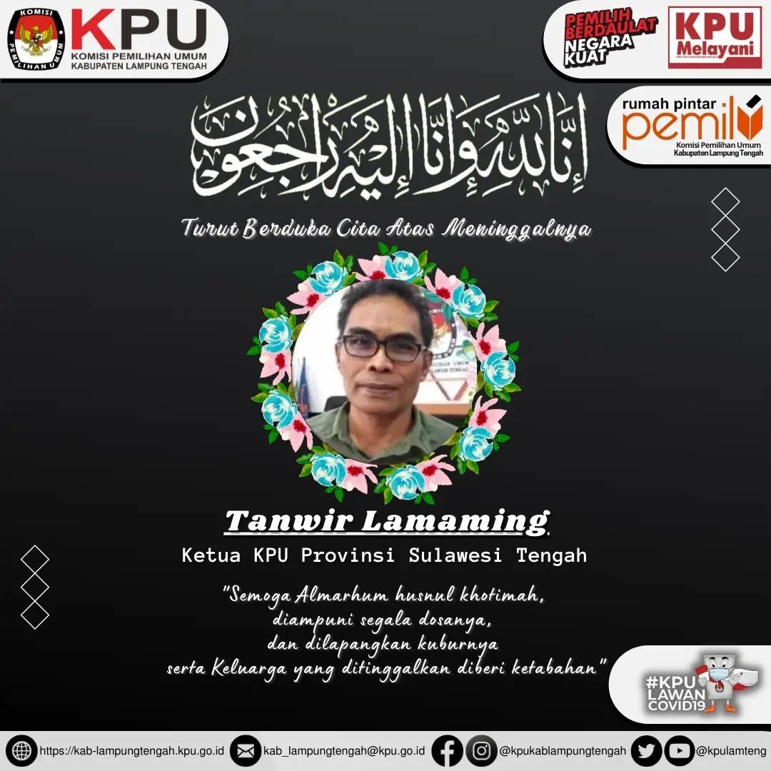 KPU Kabupaten Lampung Tengah mengucapkan duka mendalam atas meninggalnya Bapak Tanwir Lamaming, Ketua KPU Provinsi Sulawesi Tengah