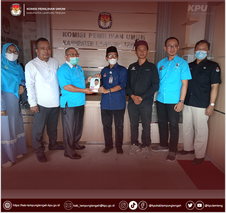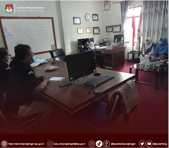 Komisi Pemilihan Umum Kabupaten Lampung Tengah pada rabu, 13 Juli 2022 menerima kunjungan silaturahmi dan sekaligus audiensi dari Pimpinan & Pengurus Partai Gelombang Rakyat Indonesi (Gelora) Tingkat Kabupaten Lampung Tengah. Acara berlangsung di Ruang Ketua KPU kabupaten Lampung Tengah. Acara di ikuti oleh ketua dan anggota serta sekretaris dan Kasubbag KPU Kabupaten Lampung Tengah. Hadir Dalam acara tersebut Ketua & Wakil Ketua Partai Gelora Kab. Lam Teng Sukardiono, Sp dan M. Arif Sanjaya Sakti, Sekretaria Habrisol, Bendahara Sri Astuti Ningsih, S.Si. Apt dan Lily Oktavianti Bid. Perempuan.