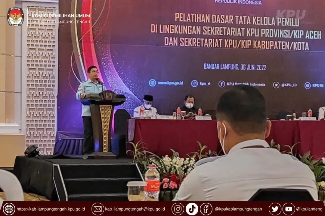 KPU Kabupaten Lampung Tengah mengikuti Kegiatan Pelatihan Dasar Tata Kelola Pemilu, Senin (06/06). Kegiatan ini dipusatkan pada tiap-tiap KPU Provinsi sebagai lokasi penyelenggaraan. Pelatihan Dasar Tata Kelola Pemilu diikuti oleh PNS Sekretariat KPU Kabupaten/Kota se-Provinsi Lampung bertempat di Hotel Swiss-bell Bandar Lampung.