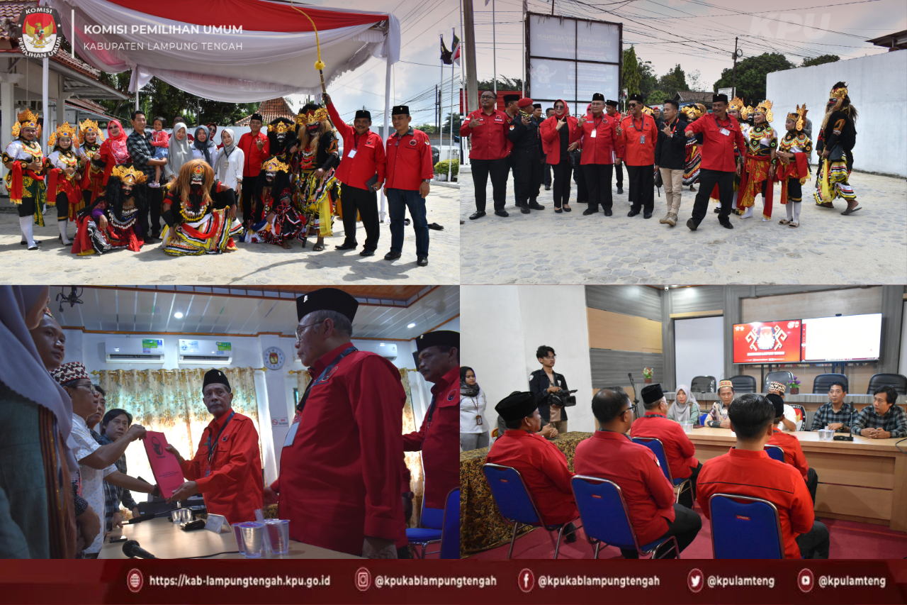 Delegasi partai diterima oleh Ketua Komisi Pemilihan Umum Kabupaten Lampung Tengah, Anggota Komisi Pemilihan Umum Kabupaten Lampung Tengah bersama Sekretariat Komisi Pemilihan Umum Kabupaten Lampung Tengah dan disaksikan oleh Anggota Bawaslu Kabupaten Lampung Tengah di Aula Komisi Pemilihan Umum Kabupaten Lampung Tengah.