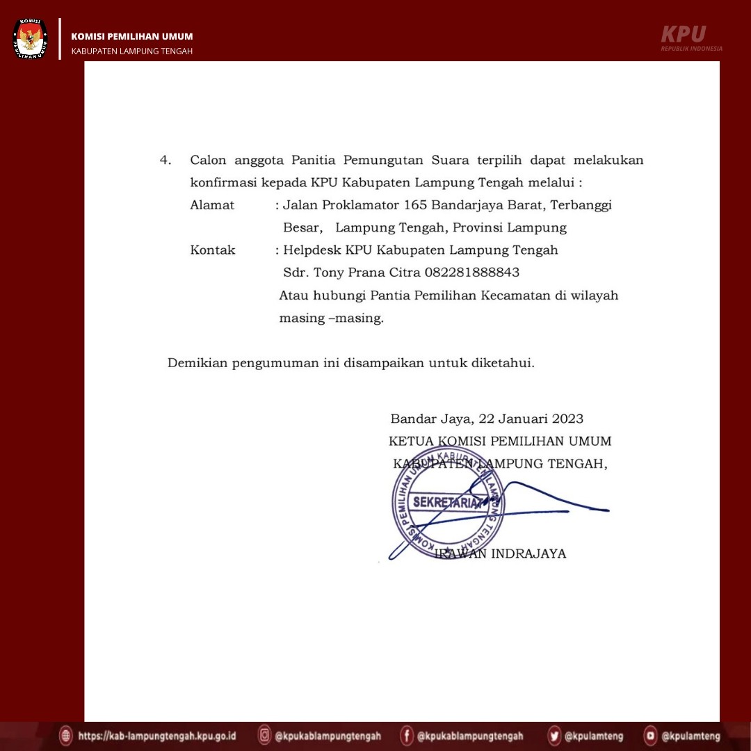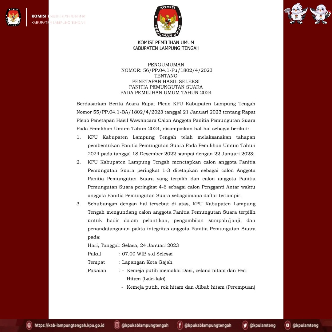 Pengumuman Penetapan Hasil Seleksi Panitia Pemungutan Suara (PPS) pada Pemilihan Umum Tahun 2024