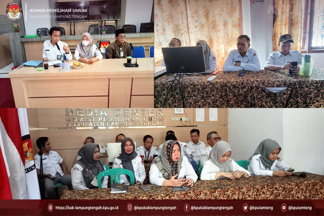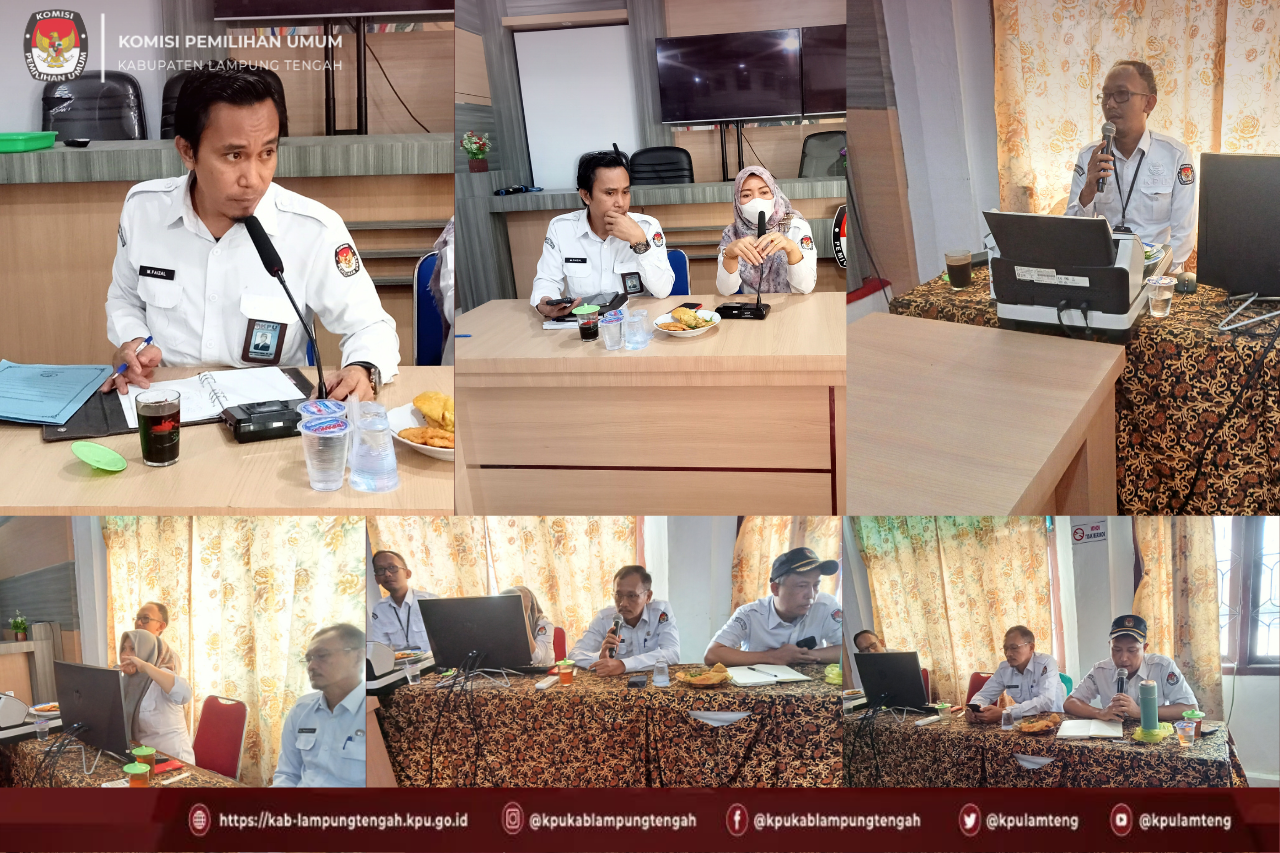 Rapat ini dihadiri oleh Ketua Komisi Pemilihan Umum Kabupaten Lampung Tengah, Anggota Komisi Pemilihan Umum Kabupaten Lampung Tengah, Sekretaris Komisi Pemilihan Umum Kabupaten Lampung Tengah, Kasubbag dan Staf sekretariat Komisi Pemilihan Umum Kabupaten Lampung Tengah. Adapun hal yang dibahas dalam Rapat ini adalah kegiatan masing-masing Divisi.