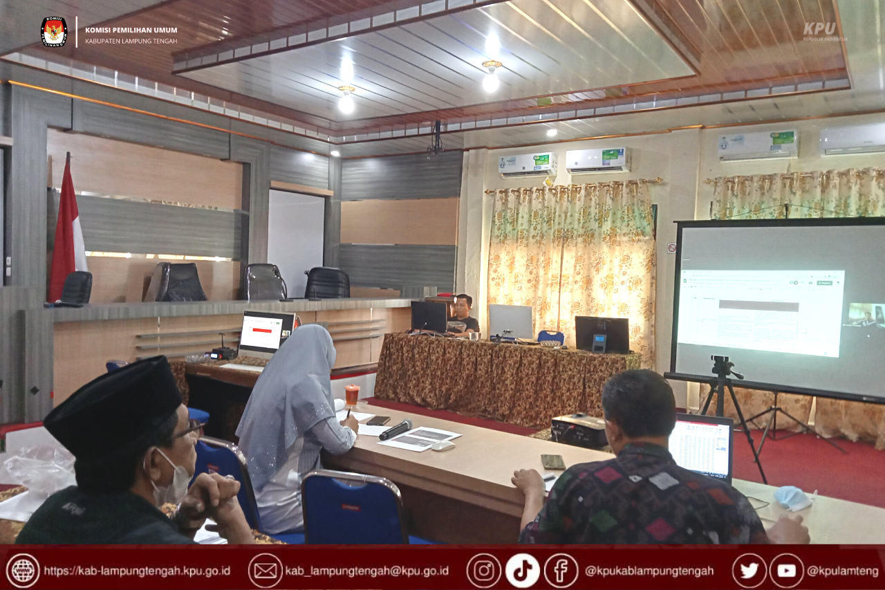 Komisi Pemilihan Umum Kabupaten Lampung Tengah pada hari ini Sabtu 20 Agustus 2022 mengikuti Rapat Koordinasi Dalam Rangka Mencermati PKPU Partisipasi Masyarakat Dalam Pemilu dan Pemilihan Umum Gubernur dan Wakil Gubernur, Bupati dan Wakil Bupati, Walikota dan Wakil Walikota.