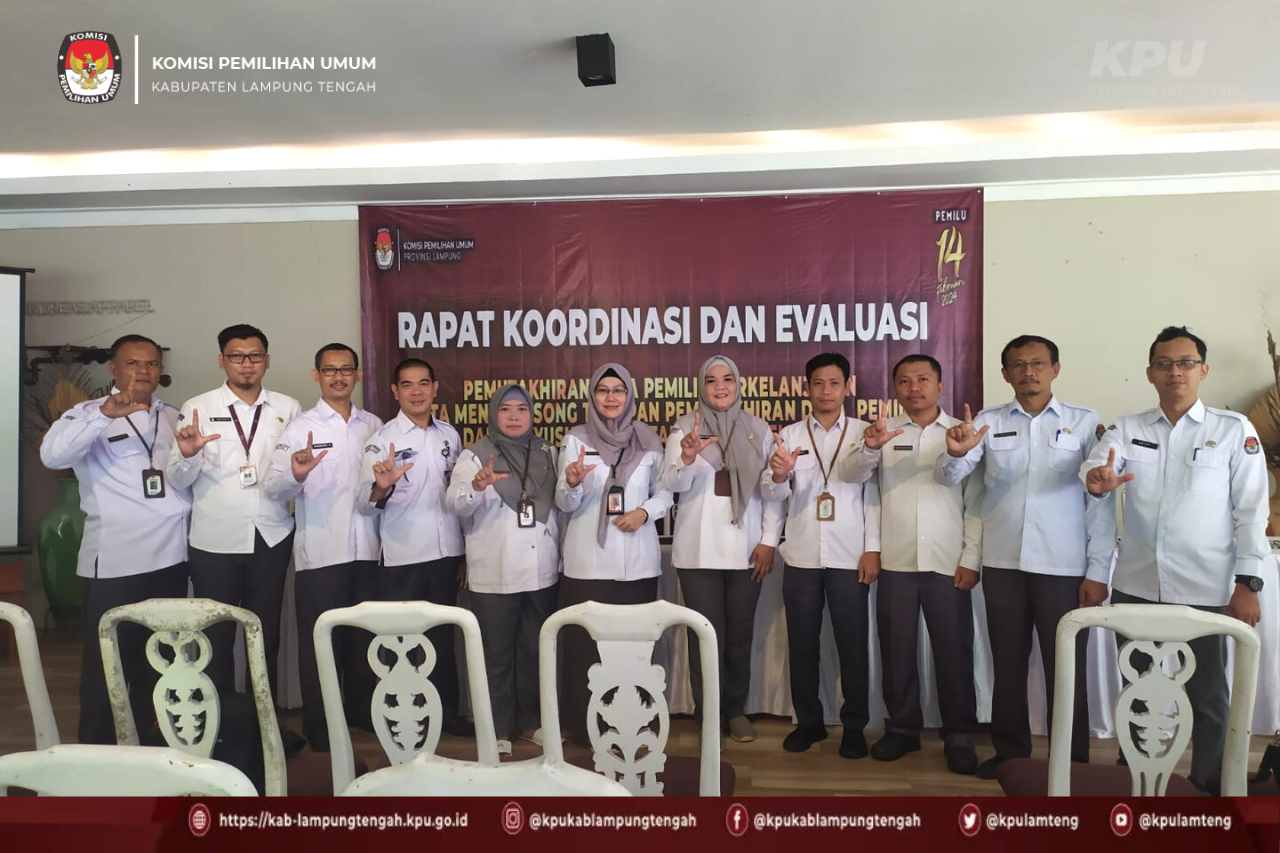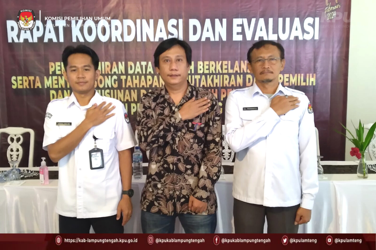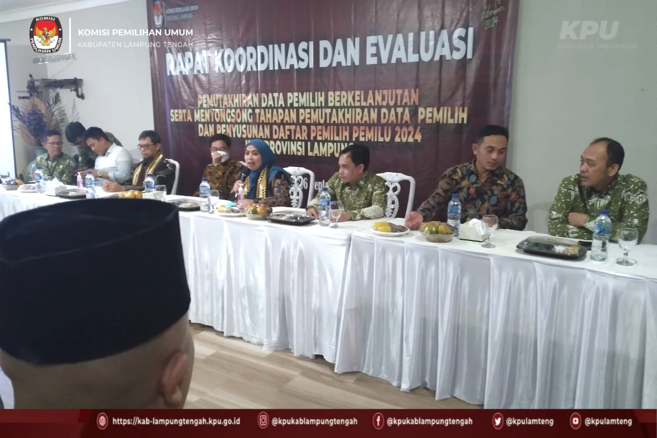Komisi Pemilihan Umum Kabupaten Lampung Tengah pada hari Senin, 26 September 2022 mengikuti Rapat Koordinasi dan Evaluasi Pemutakhiran Data Pemilih Berkelanjutan (PDPB) serta Menyongsong Tahapan Pemutakhiran Data Pemilih dan Penyusunan Daftar Pemilih Pemilu 2024.