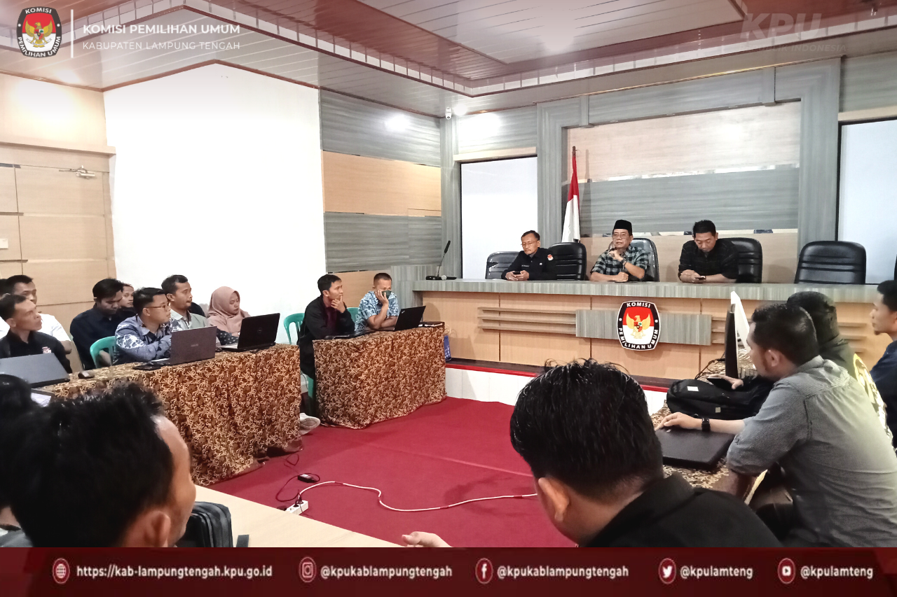 #TemanPemilih, Rabu,29 Maret 2023 Komisi Pemilihan Umum Kabupaten Lampung Tengah mengadakan Rapat Koordinasi Internal Persiapan Penyusunan Daftar Pemilih Sementara (DPS) dengan Anggota PPK Divisi Data di Aula KPU Kabupaten Lampung Tengah.