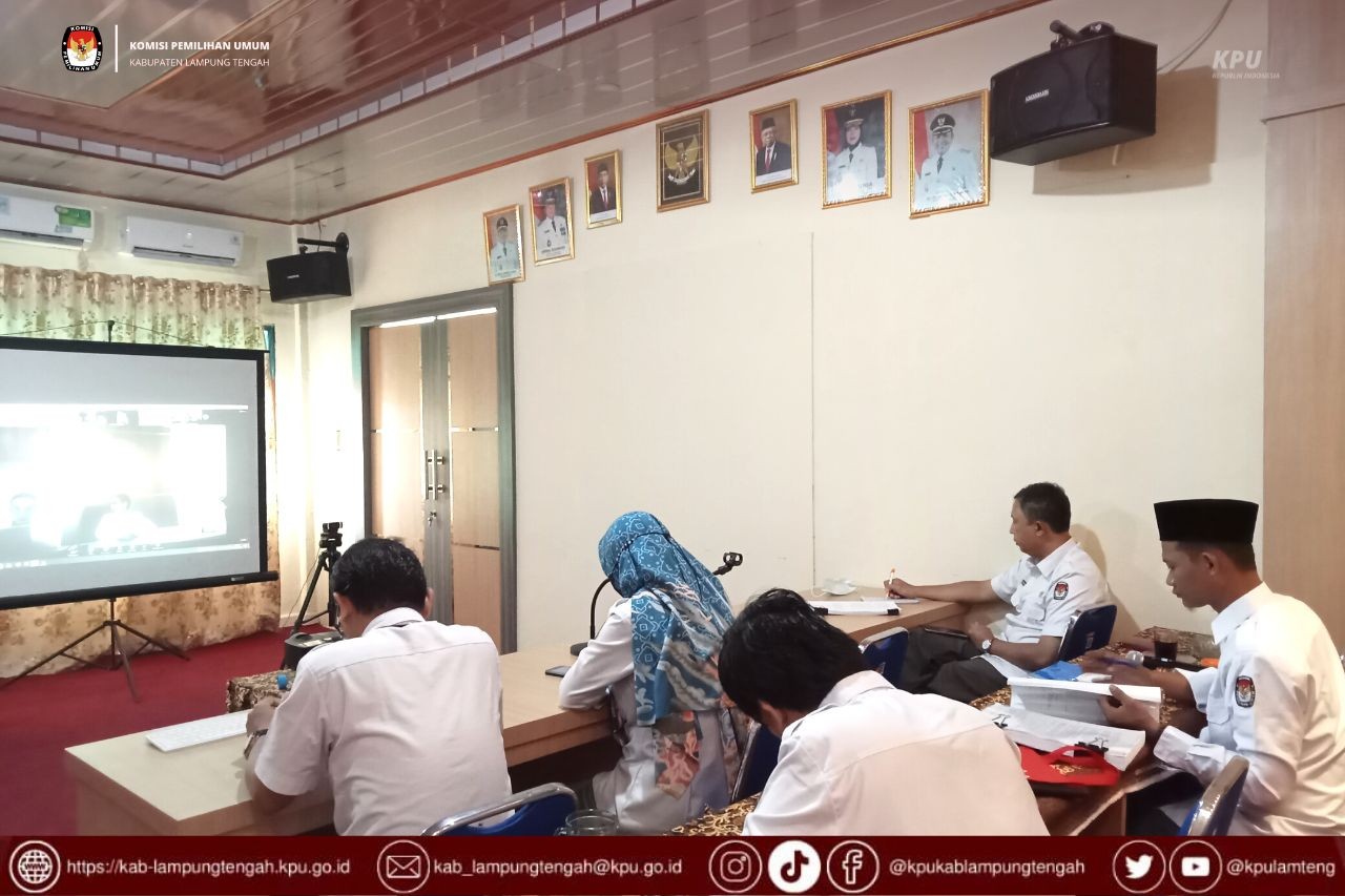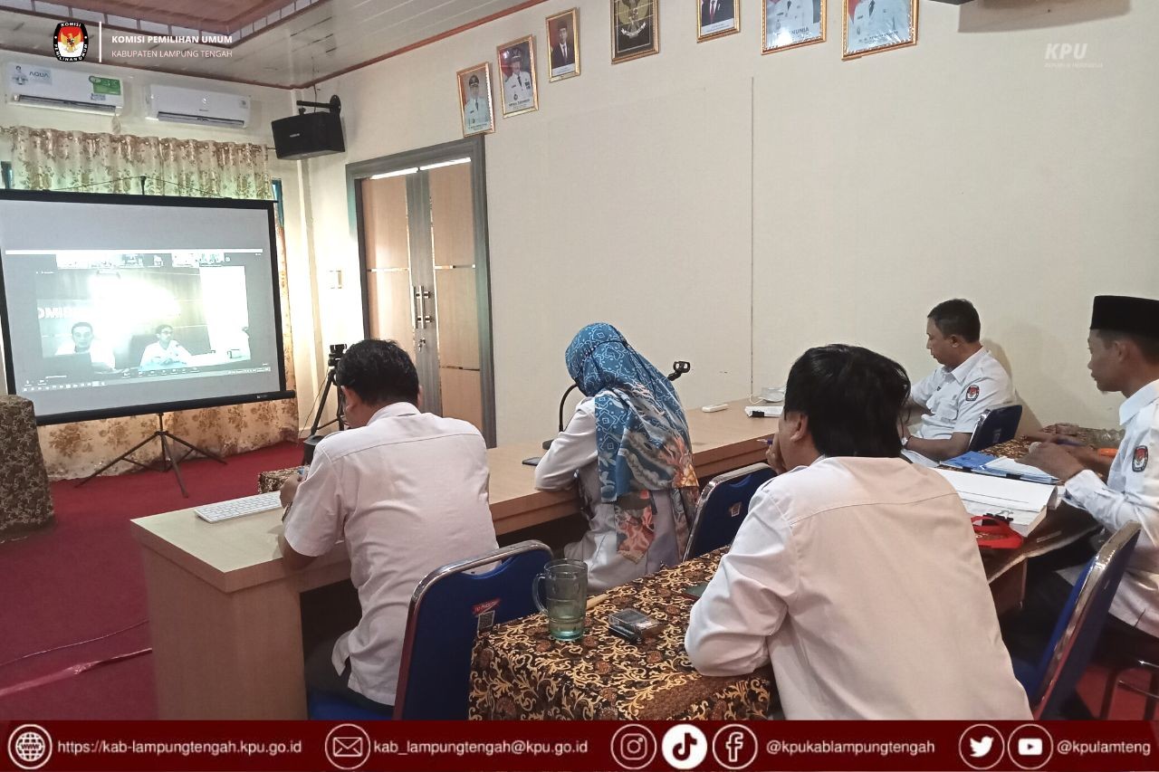 Komisi Pemilihan Umum Kabupaten Lampung Tengah pada hari ini Senin, 15 Agustus 2022 mengikuti Rapat Koordinasi Pemantapan Persiapan Verifikasi Administrasi Dokumen Persyaratan Keanggotaan Partai, yang diadakan Oleh Komisi Pemilihan Umum Provinsi Lampung secara Daring melalui zoom meeting di Aula Kantor Komisi Pemilihan Umum Kabupaten Lampung Tengah.