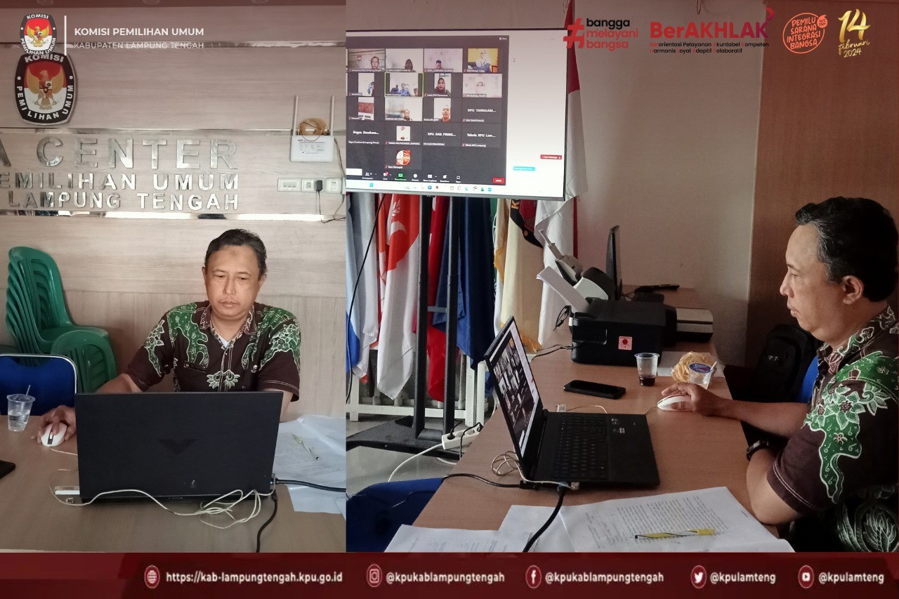 #TemanPemilih, KPU Kabupaten Lampung Tengah mengikuti kegiatan Rapat Koordinasi Penetapan Jadwal Kampanye Rapat Umum pada Pemilu Serentak Tahun 2024 secara daring, Jumat 19 Januari 2024.