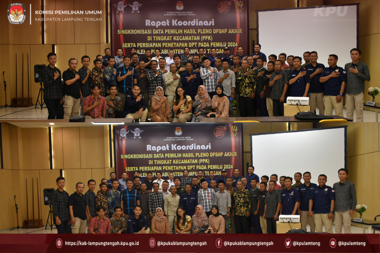 Rapat Koordinasi Singkronisasi Data Pemilih Hasil Pleno DPSHP Akhir di Tingkat Kecamatan (PPK) Serta Persiapan Penetapan DPT Pada Pemilu 2024 Oleh KPU Kabupaten Lampung Tengah
