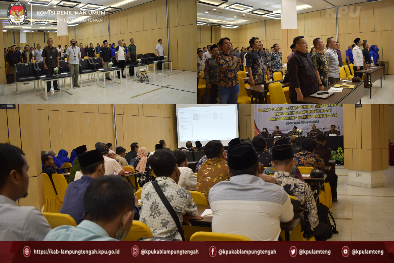 Rapat Pleno Terbuka Rekapitulasi Daftar Pemilih Sementara (DPS) tingkat Kabupaten Lampung Tengah pada Pemilu Tahun 2024