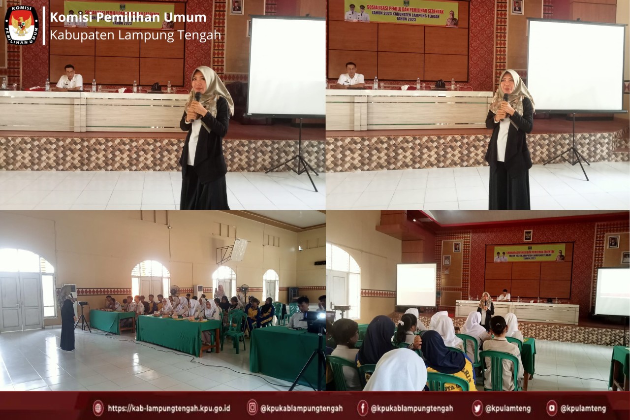 Sosialisasi Pemilu dan Pemilih Serantak 2024 Kabupaten Lampung Tengah di SMA Negeri 1 Kota Gajah