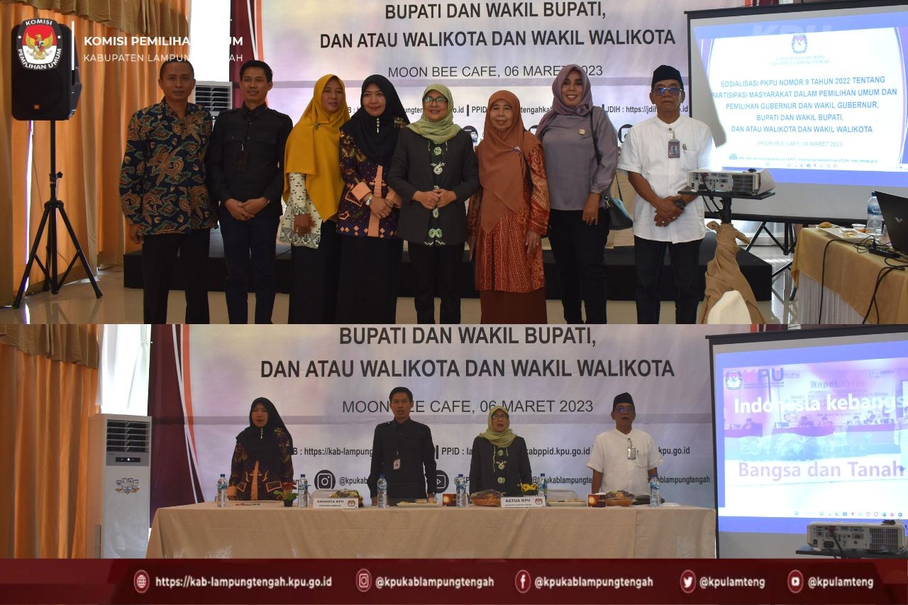 #TemanPemilih, Komisi Pemilihan Umum Kabupaten Lampung Tengah pada hari Senin, 06 Maret 2023 melaksanakan Sosialisasi PKPU Nomor 9 Tahun 2022 Tentang Partisipasi Masyarakat Dalam Pemilihan Umum Dan Pemilihan Gubernur Dan Wakil Gubernur, Bupati Dan Wakil Bupati, Dan/Atau Walikota Dan Wakil Walikota bertempat di Moonbee Cafe Bandar Jaya.