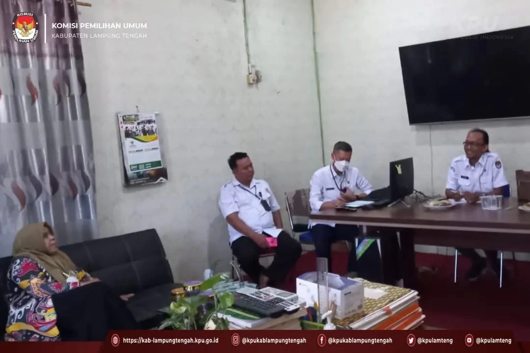 KPU Kabupaten Lampung Tengah menerima kunjungan dari Anggota KPU Provinsi Lampung, Ibu Titik Sutriningsih dan Kepala Bagian Keuangan Umum dan Logistik Ibu Reni Lestiani beserta staf dalam rangka Supervisi Penyusunan Rencana Kebutuhan Logistik serta Monitoring Persiapan Tempat Penyimpanan Logistik Pemilu Serentak Tahun 2024, Kamis (02/06).