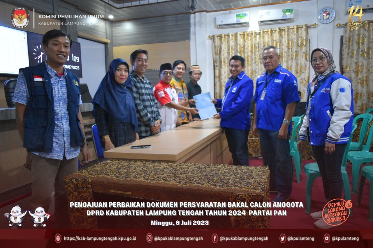 Pada Peraturan KPU Nomor 10 Tahun 2023 Tentang Pencalonan Anggota Dewan Perwakilan Rakyat, Dewan Perwakilan Raky Daerah Provinsi, Dan Dewan Perwakilan Rakyat Daerah Kabupaten/Kota, dan sesuai dengan hasil verifikasi administrasi yang telah dilaksanakan oleh Komisi Pemilihan Umum Kabupaten Lampung Tengah, Partai Politik diberikan kesempatan untuk melakukan perbaikan dokumen persyaratan Bakal Calon sejak tanggal 26 Juni hingga 9 Juli 2023. Pada tanggal 9 juli 2023 pendaftaran akan dibuka sejak pukul 08.00 s/d 23.59 WIB.