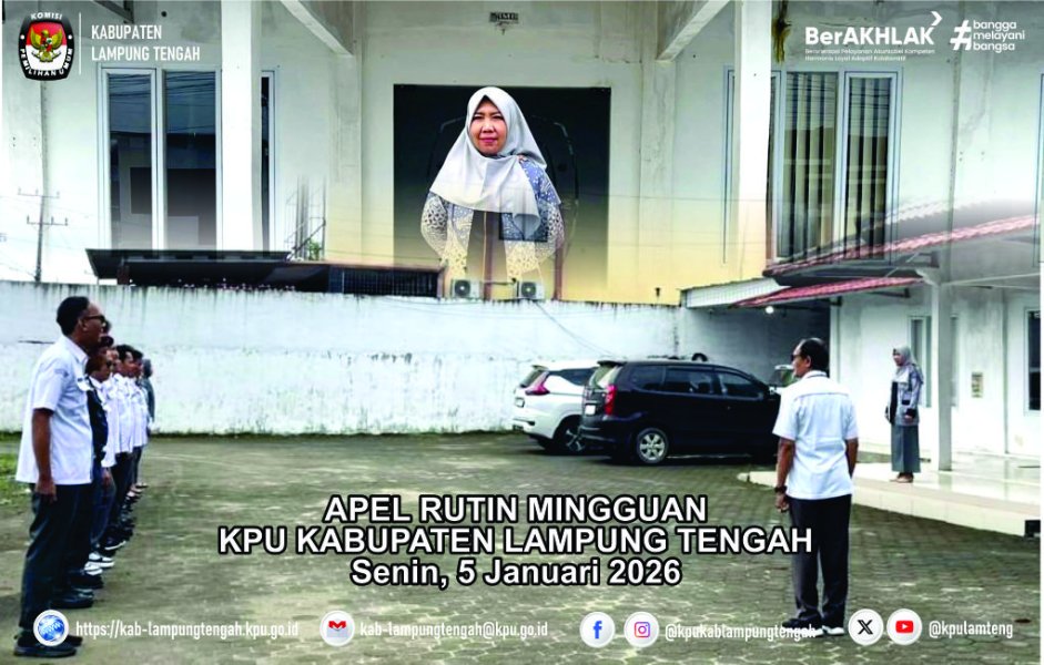 Komisi Pemilihan Umum (KPU) Kabupaten Lampung Tengah kembali menyelenggarakan Apel Rutin Mingguan pada Senin, 12 Januari 2026. Kegiatan apel dilaksanakan di halaman Kantor KPU Kabupaten Lampung Tengah dan diikuti oleh seluruh Anggota KPU, pejabat struktural, serta jajaran pegawai sekretariat KPU Kabupaten Lampung Tengah. Apel rutin mingguan ini merupakan agenda kelembagaan yang secara konsisten dilaksanakan sebagai bagian dari pembinaan kedisiplinan aparatur, penguatan koordinasi internal, serta sarana penyampaian arahan pimpinan kepada seluruh jajaran. Selain itu, apel juga menjadi momentum untuk menumbuhkan semangat kebersamaan dan tanggung jawab dalam menjalankan tugas-tugas kepemiluan. Bertindak selaku Pembina Apel adalah Anggota KPU Kabupaten Lampung Tengah Divisi Sosialisasi, Pendidikan Pemilih, Partisipasi Masyarakat, dan Sumber Daya Manusia (Sosdiklih dan Parmas), Siti Marfuah Darojati. Sementara itu, yang bertugas sebagai Pemimpin Apel adalah Kepala Subbagian Perencanaan, Data, dan Informasi (Kasubbag Rendatin), Djoko Pangestu. Dalam amanatnya, Pembina Apel menyampaikan beberapa poin penting terkait pelaksanaan tugas dan tanggung jawab seluruh jajaran KPU Kabupaten Lampung Tengah. Beliau menekankan pentingnya menjaga integritas, profesionalisme, serta loyalitas terhadap lembaga dalam setiap pelaksanaan tugas, baik yang bersifat administratif maupun teknis kepemiluan. Selain itu, beliau juga mengingatkan agar seluruh pegawai senantiasa meningkatkan kualitas kinerja, kedisiplinan, serta kepatuhan terhadap peraturan perundang-undangan yang berlaku. Pembina Apel juga menyampaikan bahwa tahun 2026 merupakan tahun yang strategis dalam rangka pelaksanaan program dan kegiatan kelembagaan KPU. Oleh karena itu, diperlukan sinergi dan kerja sama yang solid antar divisi dan bagian sekretariat guna memastikan seluruh program kerja dapat berjalan dengan optimal, tepat waktu, dan sesuai dengan rencana yang telah ditetapkan. Lebih lanjut, beliau mengajak seluruh jajaran untuk terus meningkatkan kapasitas diri, menjaga etos kerja, serta membangun komunikasi yang baik di lingkungan kerja. Hal tersebut dinilai penting dalam rangka mendukung terwujudnya tata kelola kelembagaan KPU yang profesional, transparan, dan akuntabel. Pelaksanaan apel berlangsung dengan tertib, lancar, dan khidmat. Seluruh peserta apel mengikuti kegiatan dengan penuh perhatian dan semangat, mencerminkan komitmen bersama dalam mendukung tugas dan fungsi KPU Kabupaten Lampung Tengah sebagai penyelenggara pemilu yang berintegritas. Melalui kegiatan apel rutin mingguan ini, KPU Kabupaten Lampung Tengah berharap dapat terus memperkuat soliditas internal, meningkatkan kedisiplinan aparatur, serta menjaga konsistensi kinerja dalam memberikan pelayanan terbaik kepada masyarakat. Kegiatan ini juga menjadi bagian dari upaya berkelanjutan KPU Kabupaten Lampung Tengah dalam mewujudkan penyelenggaraan pemilu yang berkualitas, demokratis, dan berintegritas di Kabupaten Lampung Tengah.