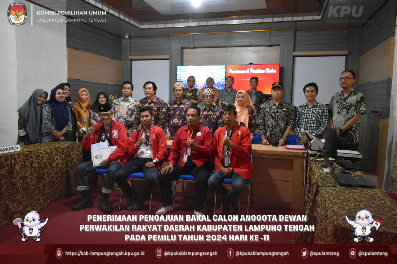 Pengajuan ini diterima langsung oleh Ketua Komisi Pemihan Umum Kabupaten Lampung Tenga, Anggota Komisi Pemihan Umum Kabupaten Lampung Tengah, Sekretaris dan Jajaran Sekretariat Komisi Pemilihan Umum Kabupaten Lampung Tengah dan disaksikan oleh Ketua dan Anggota Bawaslu Kabupaten Lampung Tengah.