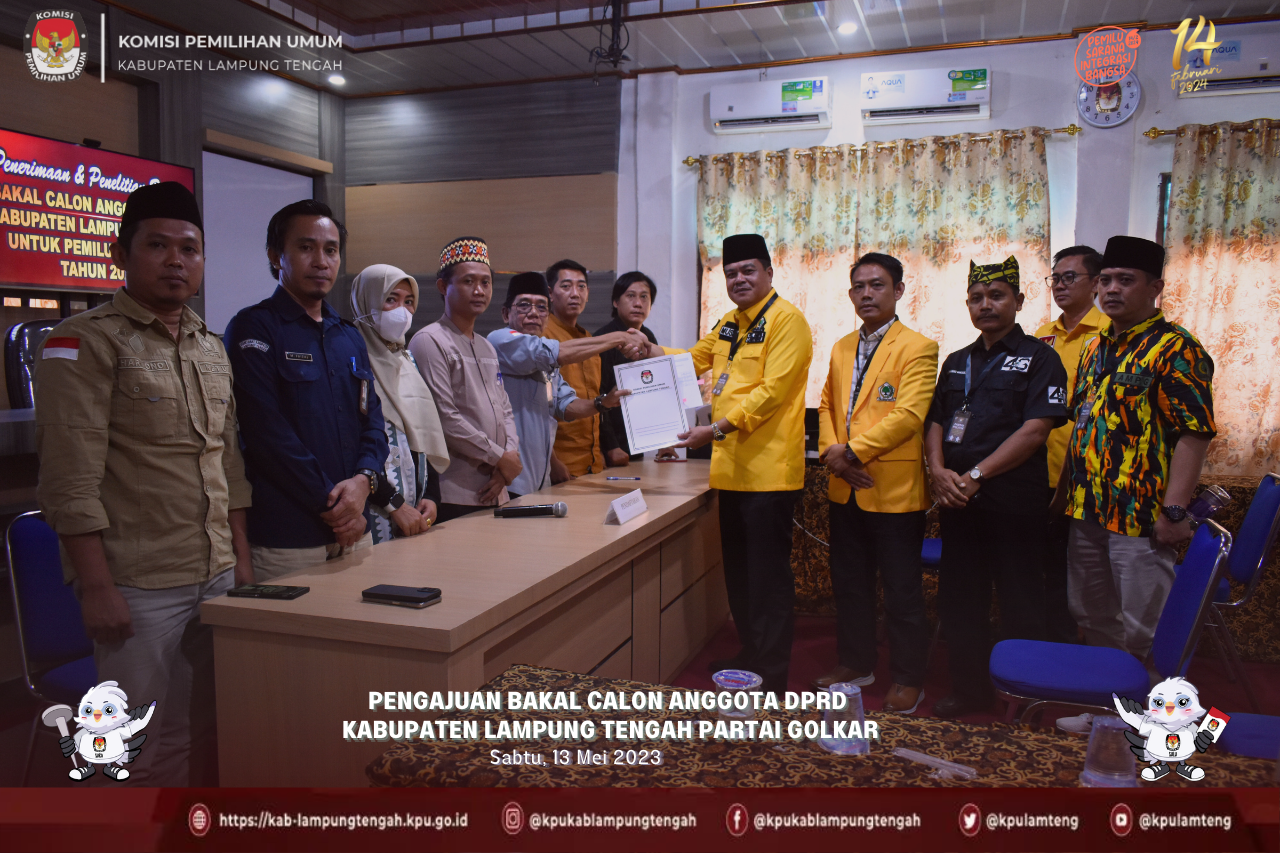 #TemanPemilih, Sabtu, 13 Mei 2023 Komisi Pemilihan Umum Kabupaten Lampung Tengah Menerima Pengajuan Bakal Calon Anggota DPRD Kabupaten Lampung Tengah dari Partai Golongan Karya (Golkar) Kabupaten Lampung Tengah di Kantor Komisi Pemilihan Umum Kabupaten Lampung Tengah.