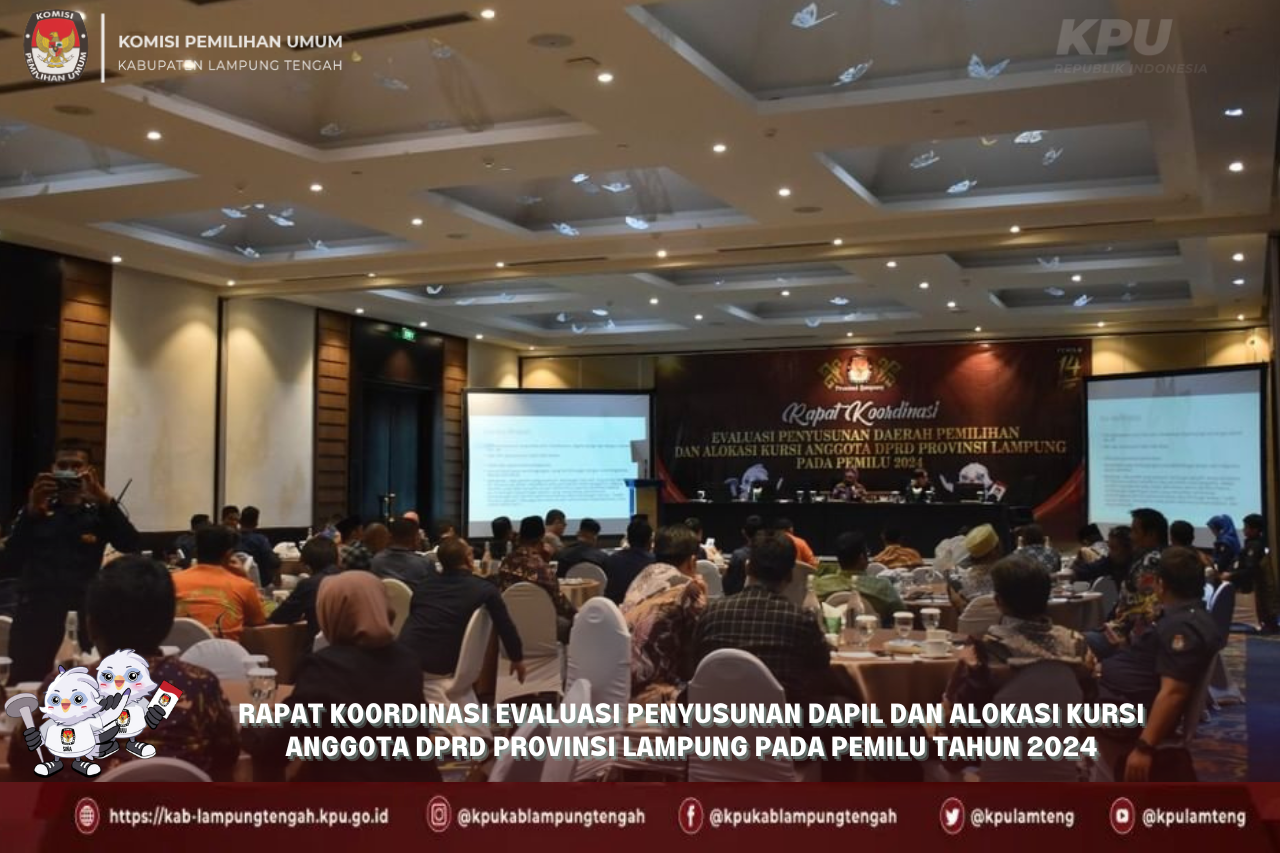 #TemanPemilih, Komisi Pemilihan Umum Kabupaten Lampung Tengah mengikuti Rapat Koordinasi Evaluasi Penyusunan Daerah Pemilihan dan Alokasi Kursi Anggota DPRD Provinsi Lampung pada Pemilu 2024.