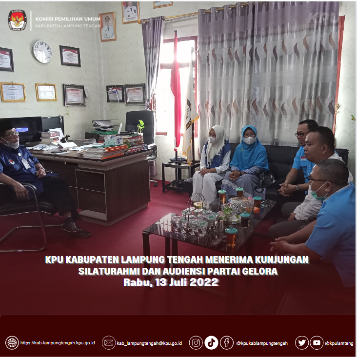 Tabik puuun... Hai #PemilihLampungTengah, Komisi Pemilihan Umum Kabupaten Lampung Tengah pada rabu, 13 Juli 2022 menerima kunjungan silaturahmi dan sekaligus audiensi dari Pimpinan & Pengurus Partai Gelombang Rakyat Indonesi (Gelora) Tingkat Kabupaten Lampung Tengah. Acara berlangsung di Ruang Ketua KPU kabupaten Lampung Tengah. Acara di ikuti oleh ketua dan anggota serta sekretaris dan Kasubbag KPU Kabupaten Lampung Tengah. Hadir Dalam acara tersebut Ketua & Wakil Ketua Partai Gelora Kab. Lam Teng Sukardiono, Sp dan M. Arif Sanjaya Sakti, Sekretaria Habrisol, Bendahara Sri Astuti Ningsih, S.Si. Apt dan Lily Oktavianti Bid. Perempuan. Dalam kesempatan silaturahmi & audiensi tersebut Sekretaris Partai Gelora Kab. Lampung Tengah Habrisol menyampaikan maksud dan tujuan datang ke Kantor KPU adalah untuk mendapatkan informasi terkait proses pendaftaran partai politik peserta Pemilu 2024 khususnya dan terkait hal-hal lain mengenai Tahapan dan pelaksanaan Pemilu 2024. Dalam kesempatan ini juga ketua KPU Kabupaten Lampung Tengah, Irawan Indra Jaya mengatakan bahwa KPU Siap melayani partai politik sebagai peserta pemilu dengan baik, diharapkan adanya kerjasama antara penyelenggara dan peserta pemilu yang baik pada pemilu 2024 nanti. Kemudian Irawan Indra Jaya juga menjelaskan bahwa proses pendaftaran partai politik yang masih mengacu pada Undang-undang (UU) Nomor 7 Tahun 2017 dan hal yang perlu diperhatikan, menurutnya, adalah terkait keanggotaan partai politik dan berkas-berkas pendukung yang menyertainya. Ia juga menyampaikan bahwa pada proses pendaftaran partai politik nanti semua dilakukan secara sistem melalui aplikasi Sistem Informasi Partai Politik (Sipol). Ikuti informasi terupdate KPU Kabupaten Lampung Tengah dengan follow dan like kami di: Website: https://kab-lampungtengah.kpu.go.id Email : kab_lampungtengah@kpu.go.id Fanpage Fb : @kpukablampungtengah Instagram : @kpukablampungtengah Twitter : @kpulamteng Youtube : @kpulamteng #TemanPemilih #KPULamTeng #KPUMelayani #PemiluSerentak2024