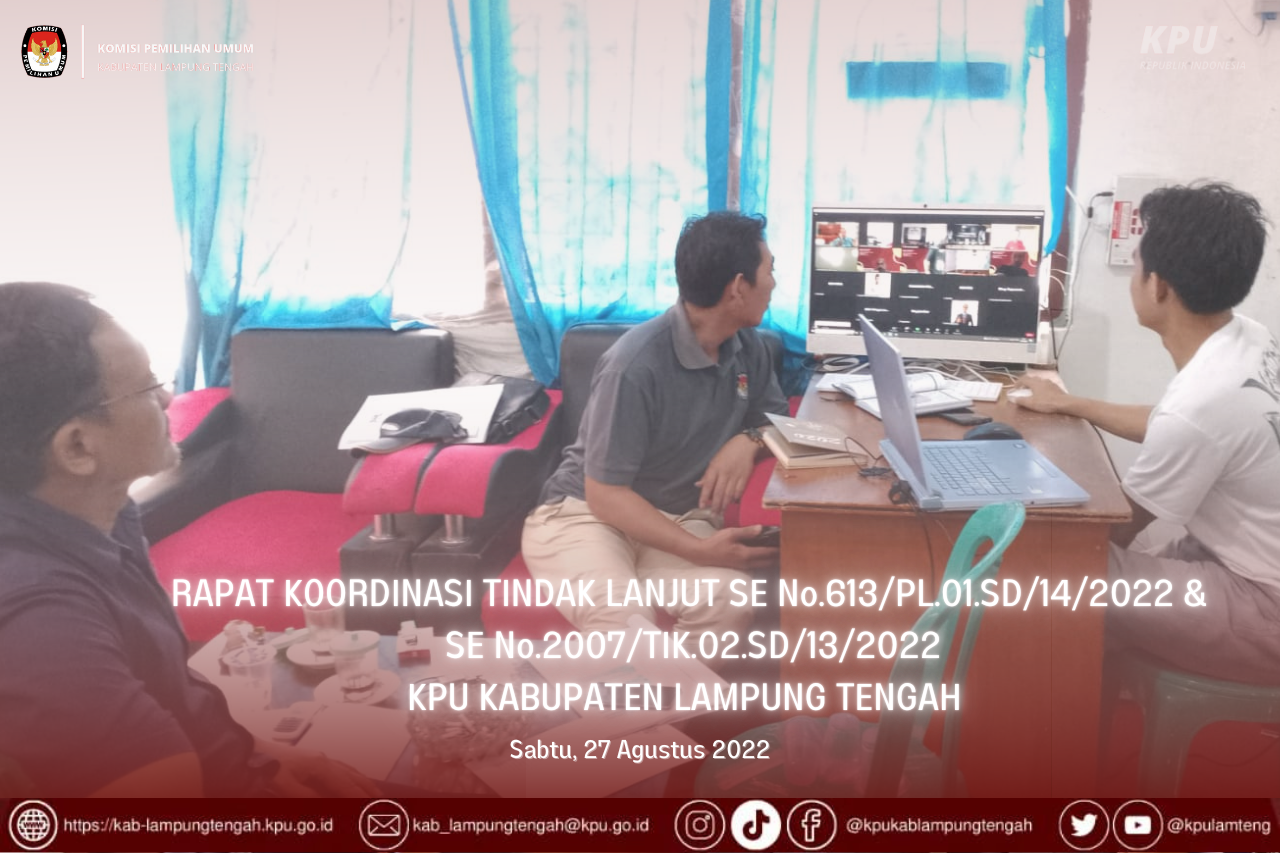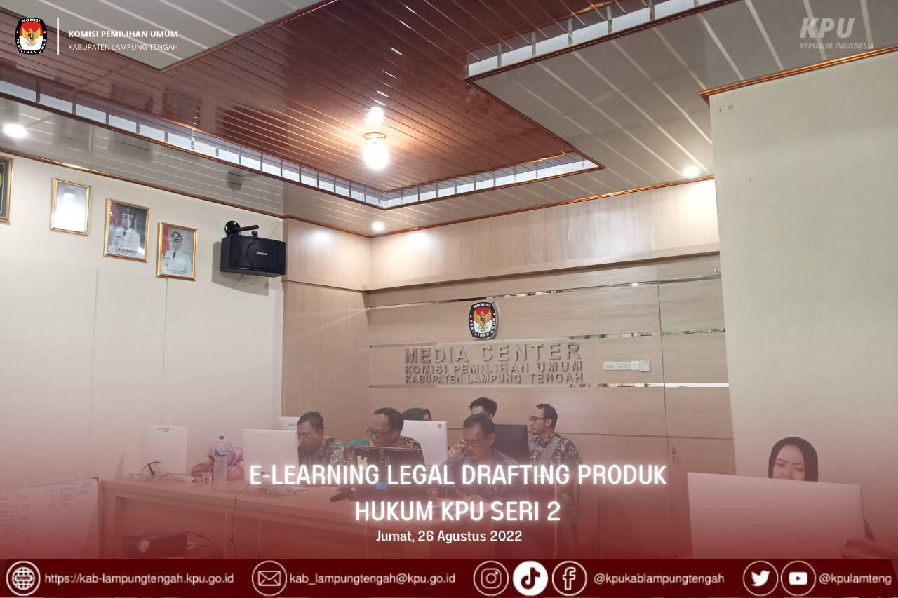 Hai #PemilihLampungTengah , Komisi Pemilihan Umum Kabupaten Lampung Tengah pada hari Jumat, 26 Agustus 2022 mengikuti E-Learning Legal Drafting Produk HUkum KPU Seri 2 di Aula Komosi Pemilihan Umum Kabupaten Lampung Tengah, secara daring Melalui zoom Meeting Kegiatan ini di Selenggarakan Oleh KPU Provinsi Lampung dan di ikuti Oleh Seluruh KPU Kabupaten/Kota Se-Provinsi Lampung. Turut hadir dalam kegiatan tersebut Kasubag Hukum & SDM Amelia Kartini, Staff Hukum & SDM Ratnawati, Kasubbag Keuangan Umum dan Logistik Primahari Romadona, Kasubbag Perancanaan Data dan Informasi Djoko Pangestu dan Kasubbag Teknis Tri Wiyatno. Dalam kegiatan disampaikan pendalaman dalam Penyusunan Produk Hukum berupa Keputusan KPU sesuai dengan Keputusan KPU RI Nomor 197 Tahun 2022 tentang Pedoman Teknis Penyusunan Keputusan di Lingkungan Komisi Pemilihan Umum. Selain itu dalam kegiatan juga mengevaluasi produk hukum berupa Surat Keputusan yang telah dibuat dan diupload di Web JDIH oleh KPU Kabupaten Kota. Ikuti informasi terupdate KPU Kabupaten Lampung Tengah dengan follow dan like kami di: Website: https://kab-lampungtengah.kpu.go.id Email : kab_lampungtengah@kpu.go.id Fanpage Fb : @kpukablampungtengah Instagram : @kpukablampungtengah Twitter : @kpulamteng Youtube : @kpulamteng #TemanPemilih #KPULamTeng #KPUMelayani #PemiluSerentak2024
