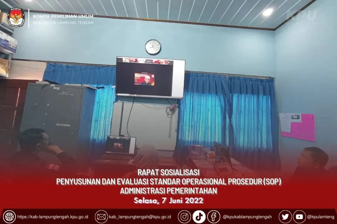KPU Kabupaten Lampung Tengah mengikuti Sosialisasi Penyusunan dan Evaluasi Standar Operasional Prosedur (SOP) Administrasi Pemerintahan di Lingkungan Sekretariat Jenderal KPU, KPU Provinsi dan KPU Kabupaten/ Kota, Selasa (07/06).