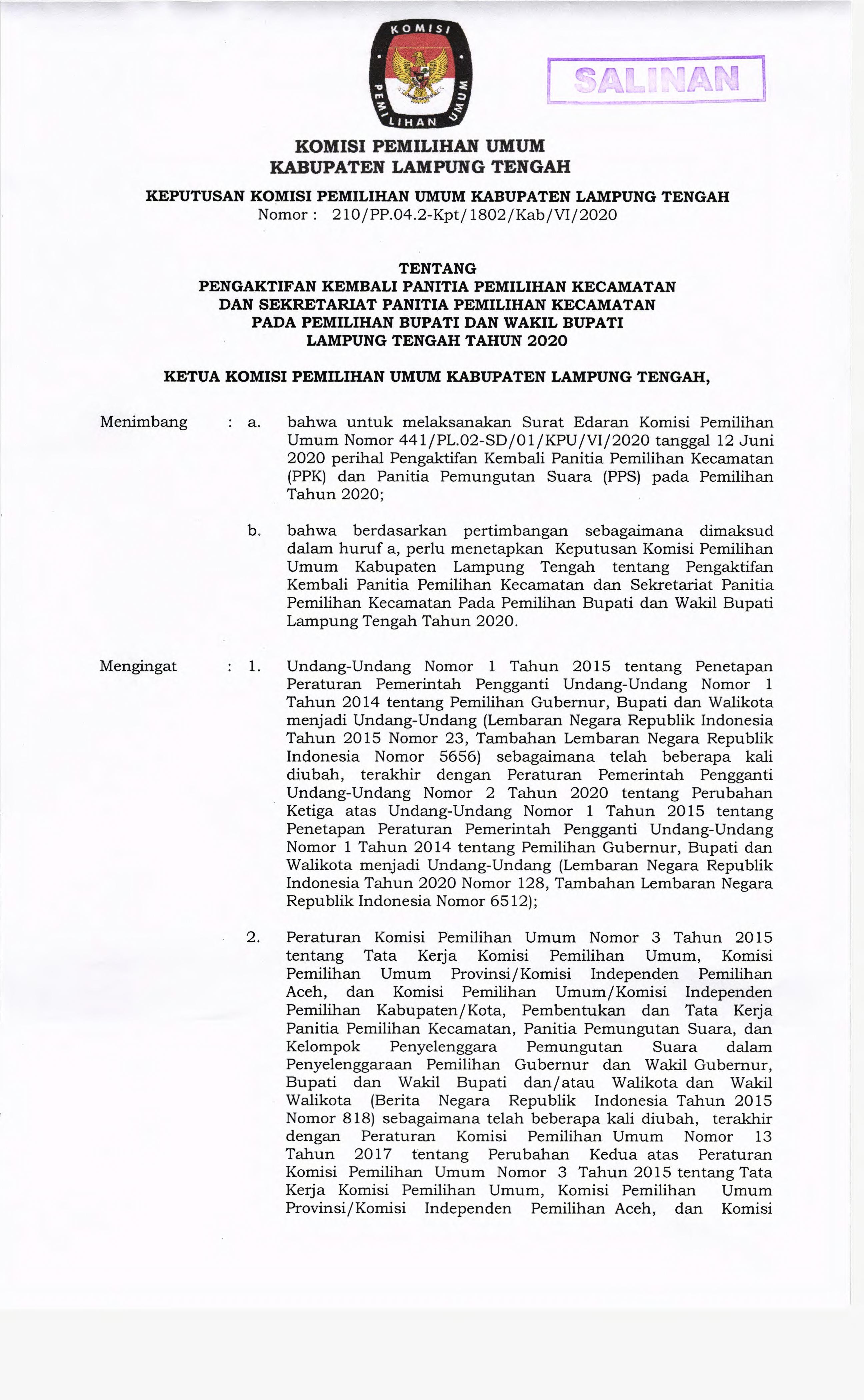 Dokumen Syarat Pencalonan, Dokumen Syarat Calon dan Tanggapan Masyarakat terhadap Bakal Pasangan Calon Bupati dan Wakil Bupati Lampung Tengah Tahun 2020 dapat dilihat pada Laman Komisi Pemilihan Umum Kabupaten Lampung Tengah berikut ini: