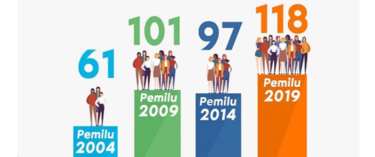 Diketahui keterwakilan perempuan yang dihasilkan pada Pemilu 2019 adalah sebanyak 20,5 persen atau 118 orang. angka ini adalah yang tertinggi sejak Pemilu pasca reformasi diselenggarakan.