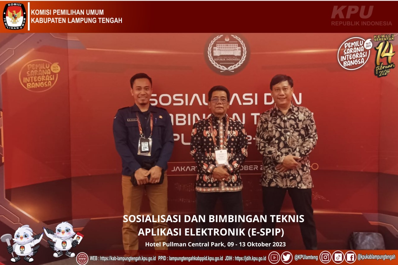 mengikuti kegiatan Sosialisasi dan Bimbingan Teknis Aplikasi elektronik Sistem Pengendalian Intern Pemerintah(e-SPIP) di Hotel Pullman Central Park, Jakarta, 9-13 Oktober 2023 yang diselenggarakan oleh KPU RI dan diikuti oleh seluruh KPU/KIP Provinsi dan KPU/KIP Kabupaten/Kota di Indonesia.