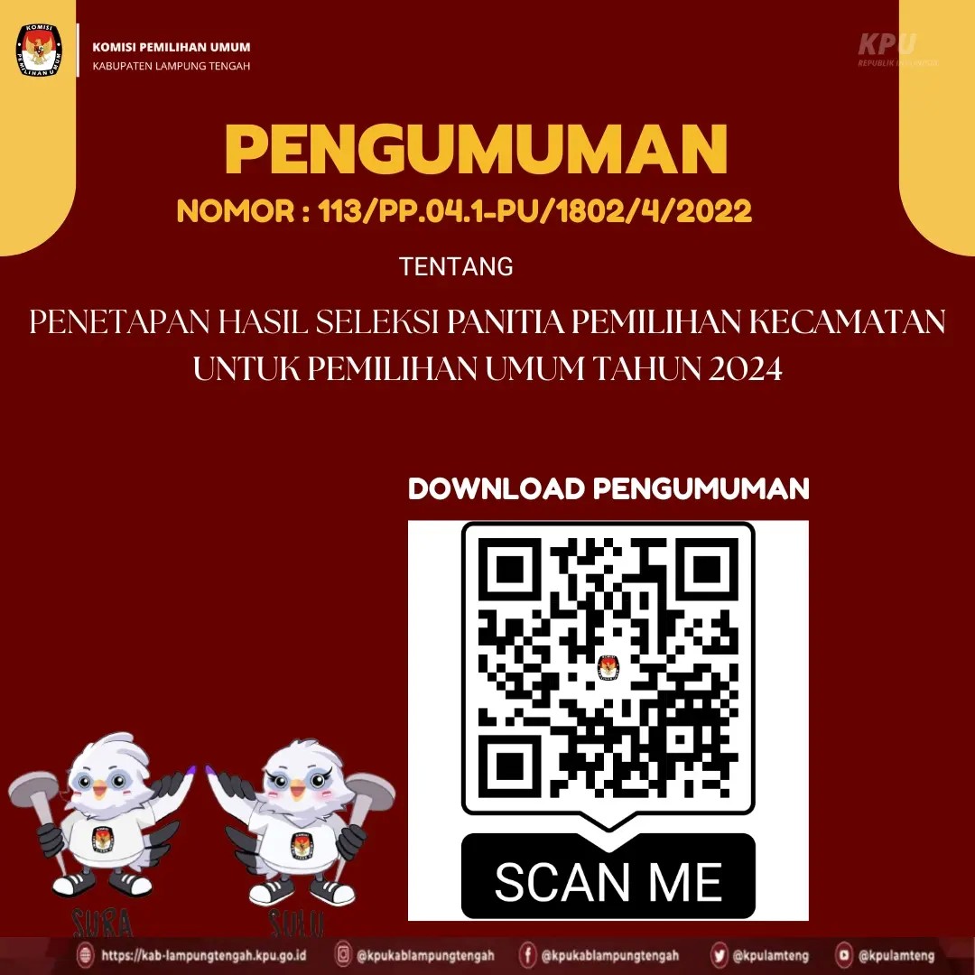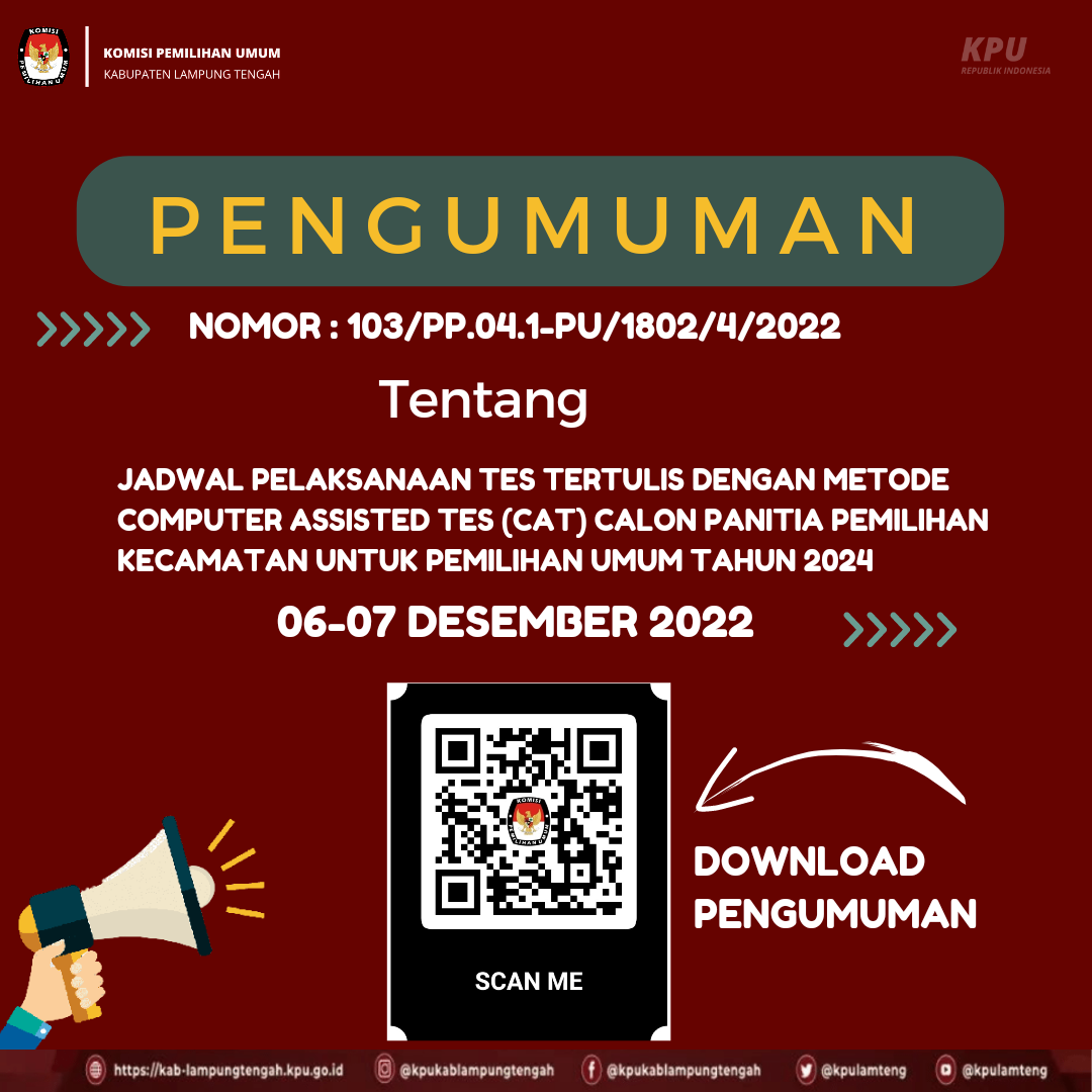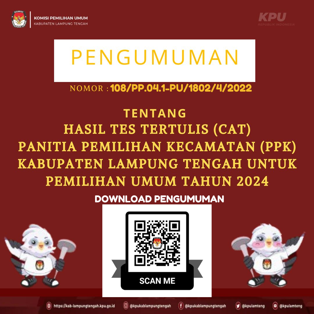 #TemanPemilih, Bagi yang sudah lolos seleksi administrasi berikut jadwal tes tertulis dan pembagian sesi pada 06-07 Desember 2022, mohon untuk bisa dicek nama dan sesi berapa anda berada. Untuk melihat daftar nama dan sesi berapa anda berada silahkan scan QR Code pada postingan ini.