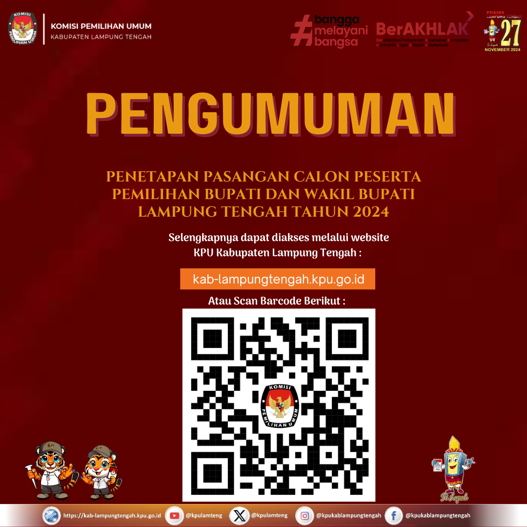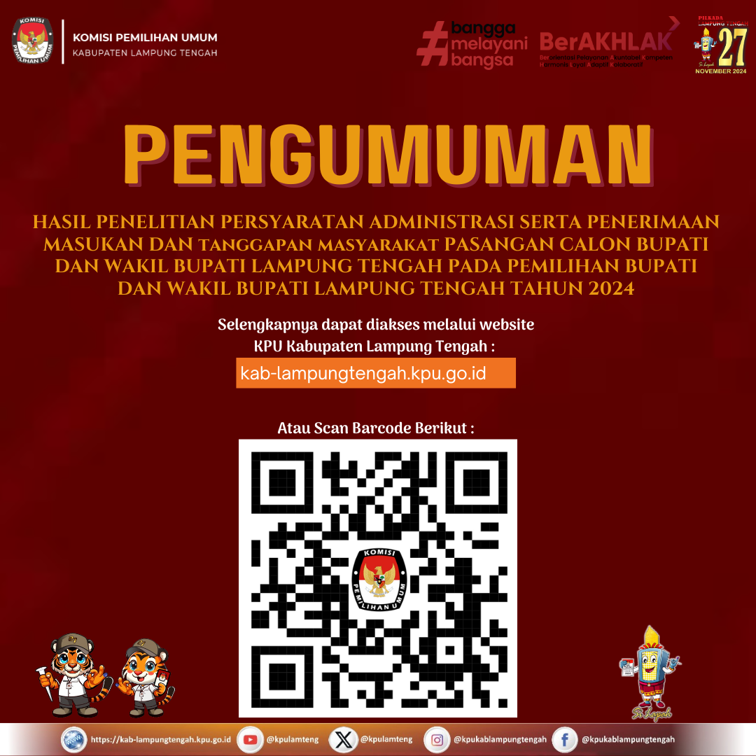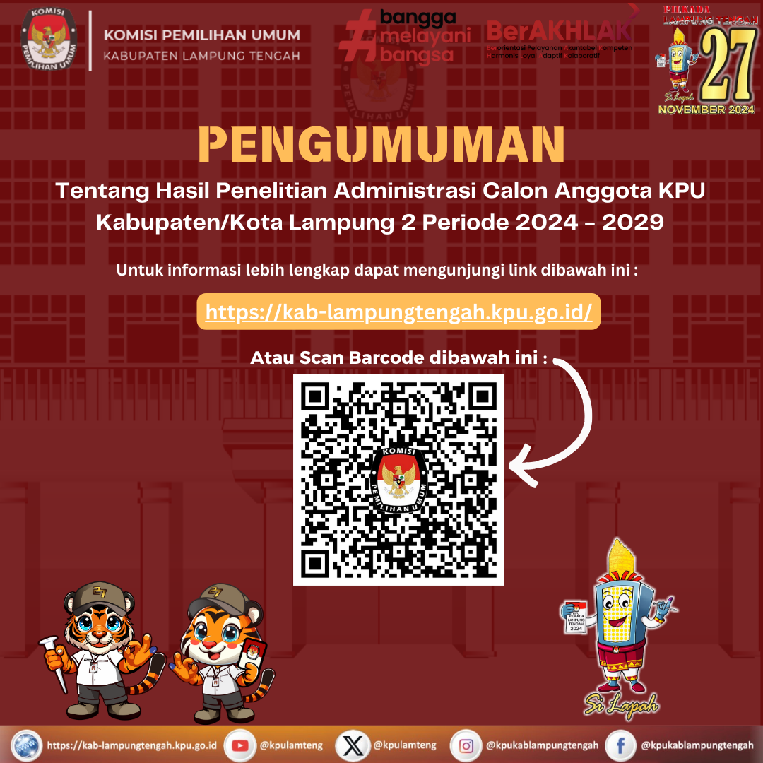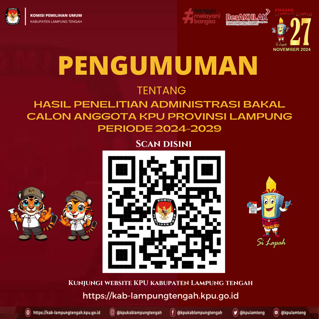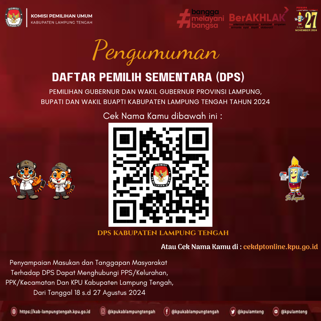 #TemanPemilih, berikut kami sampaikan Pengumuman Daftar Pemilih Sementara (DPS) Pemilihan Gubernur dan Wakil Gubernur Provinsi Lampung, Bupati dan Wakil Bupati Kabupaten Lampung Tengah Tahun 2024.